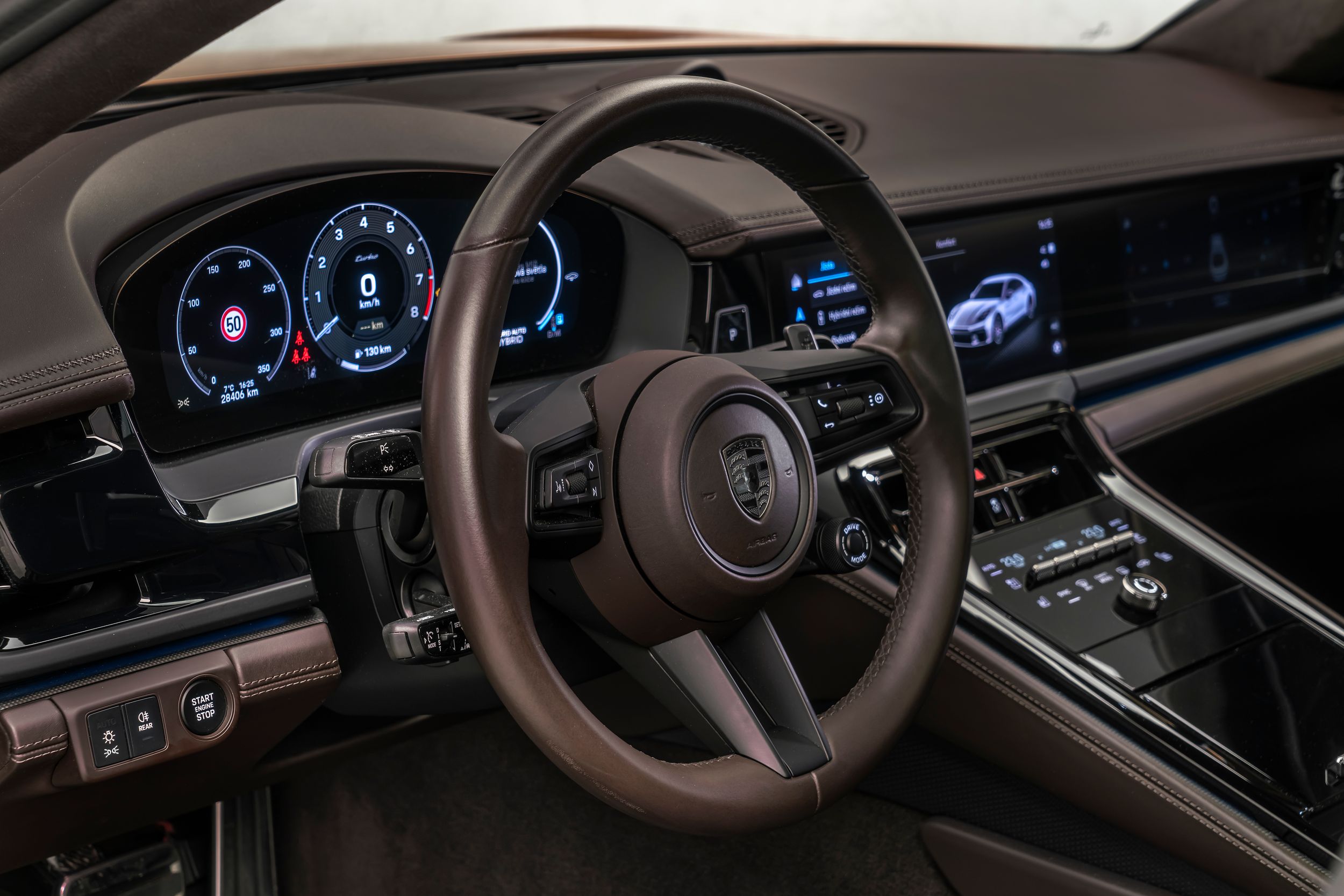 Paket úložných prostor, paket černých akcentů, displej u spolujezdce, černé brzdové třmeny (lesklé), asistenční systémy řidiče: aktivní parkovací asistent vpředu a vzadu včetně couvací kamery a prostorového výhledu, asistenční systémy řidiče: Porsche InnoDrive včetně adaptivního tempomatu, asistenční systémy řidiče: asistent pro změnu jízdního pruhu, selektivně hydraulicky výškově nastavitelný a nastavitelný podvozek (Porsche Active Ride), černé lišty oken (lesklé), vozidlo bez označení modelu, HD Matrix LED světlomety, zatmavené, včetně Porsche Dynamic Light System Plus (PDLS+), zadní světla Exclusive Design, interiér: kůže Club, kůže Walknappa, ionizátor pro čištění vzduchu, 4zónová automatická klimatizace, hlavové opěrky vpředu a vzadu s erbem Porsche, kola z lehkých slitin vpředu/vzadu: 9,5x21 / 11,5x21 (kolo Panamera Turbo S), dvoudílné elektrické panoramatické posuvné střešní okno, lakovaný nápis Porsche, boční airbagy vzadu, odvětrávání předních sedadel, vak na lyže, dveře s tlumením dovírání, sportovní výfukový systém, bronzové koncovky výfuku, černý paket Sport Design, lesklý povrch, tónovaná zadní okna (zatmavená skla).