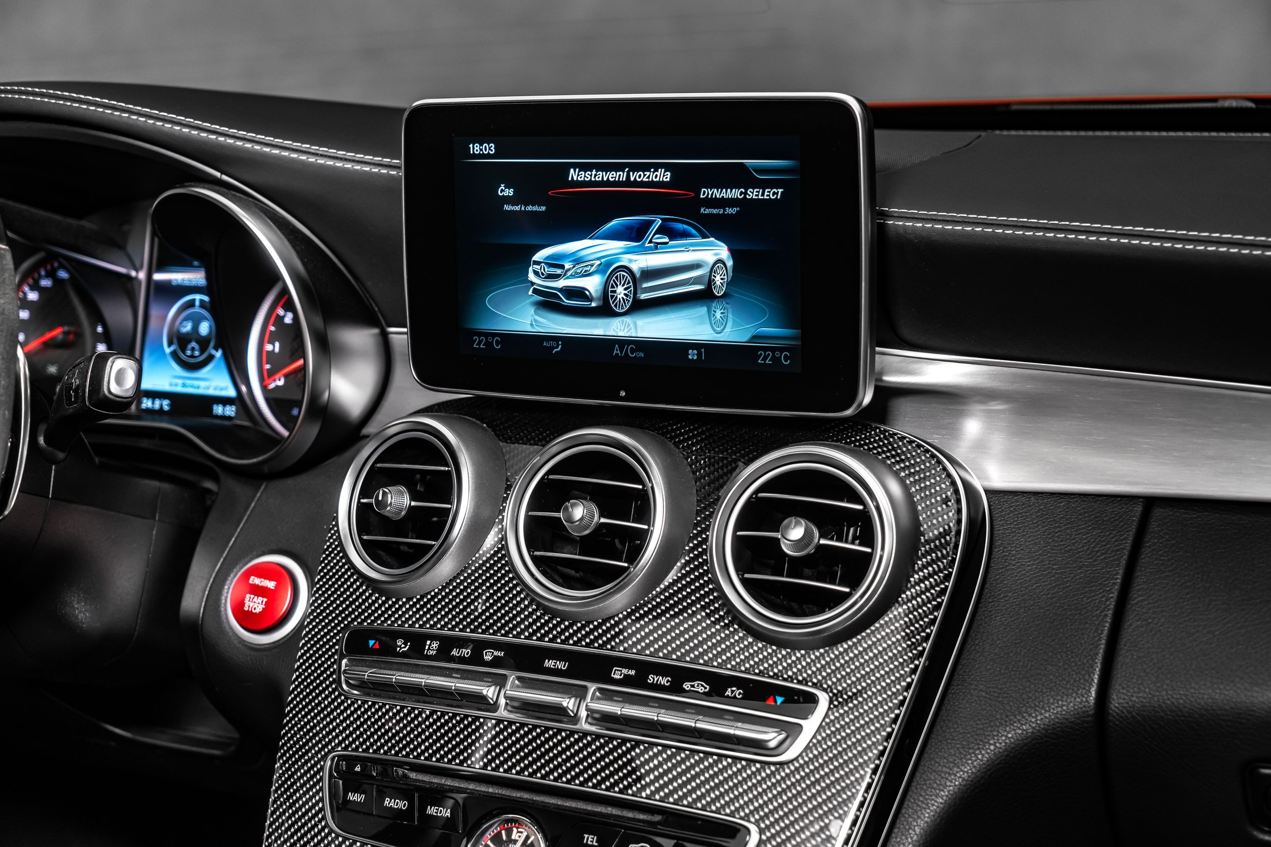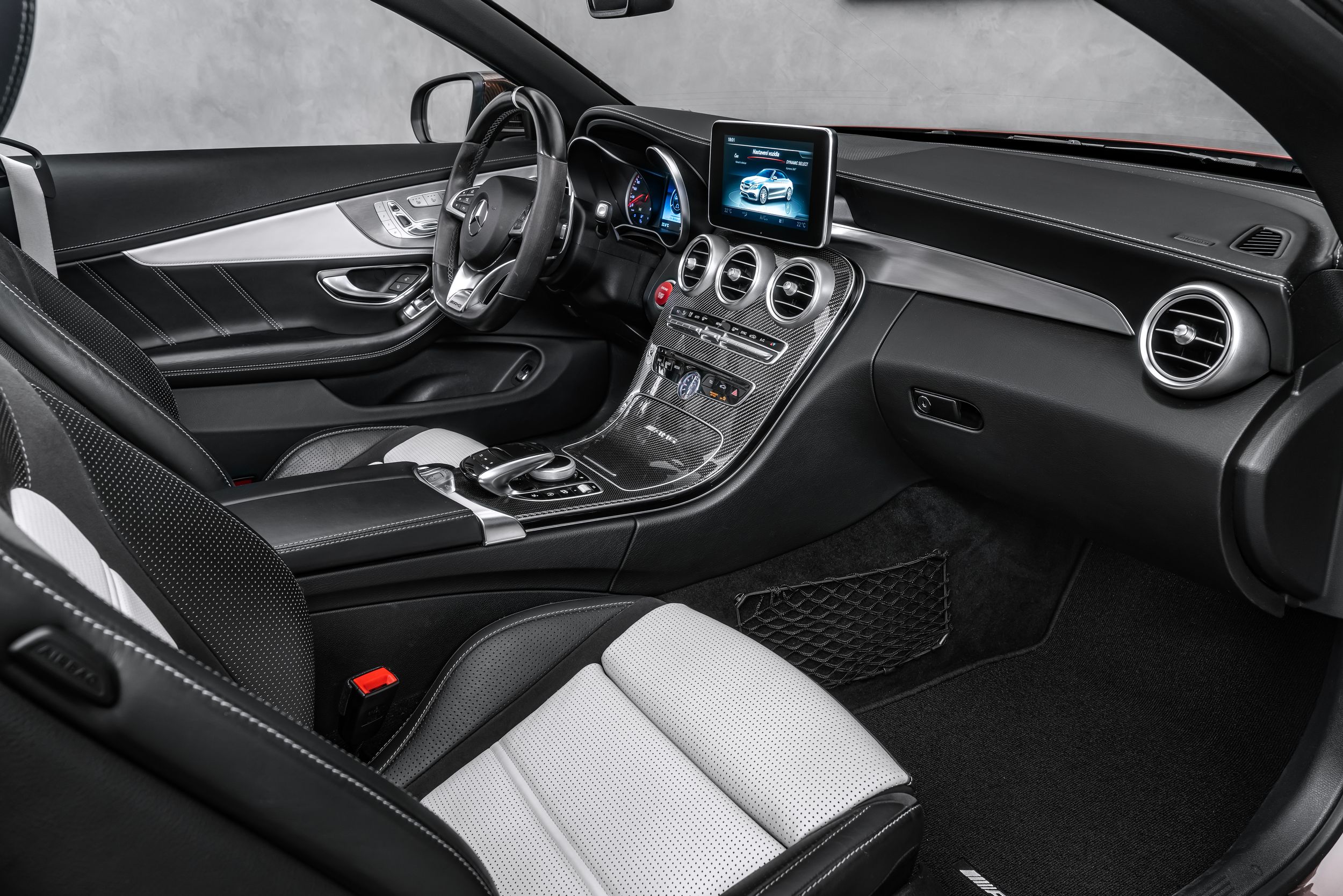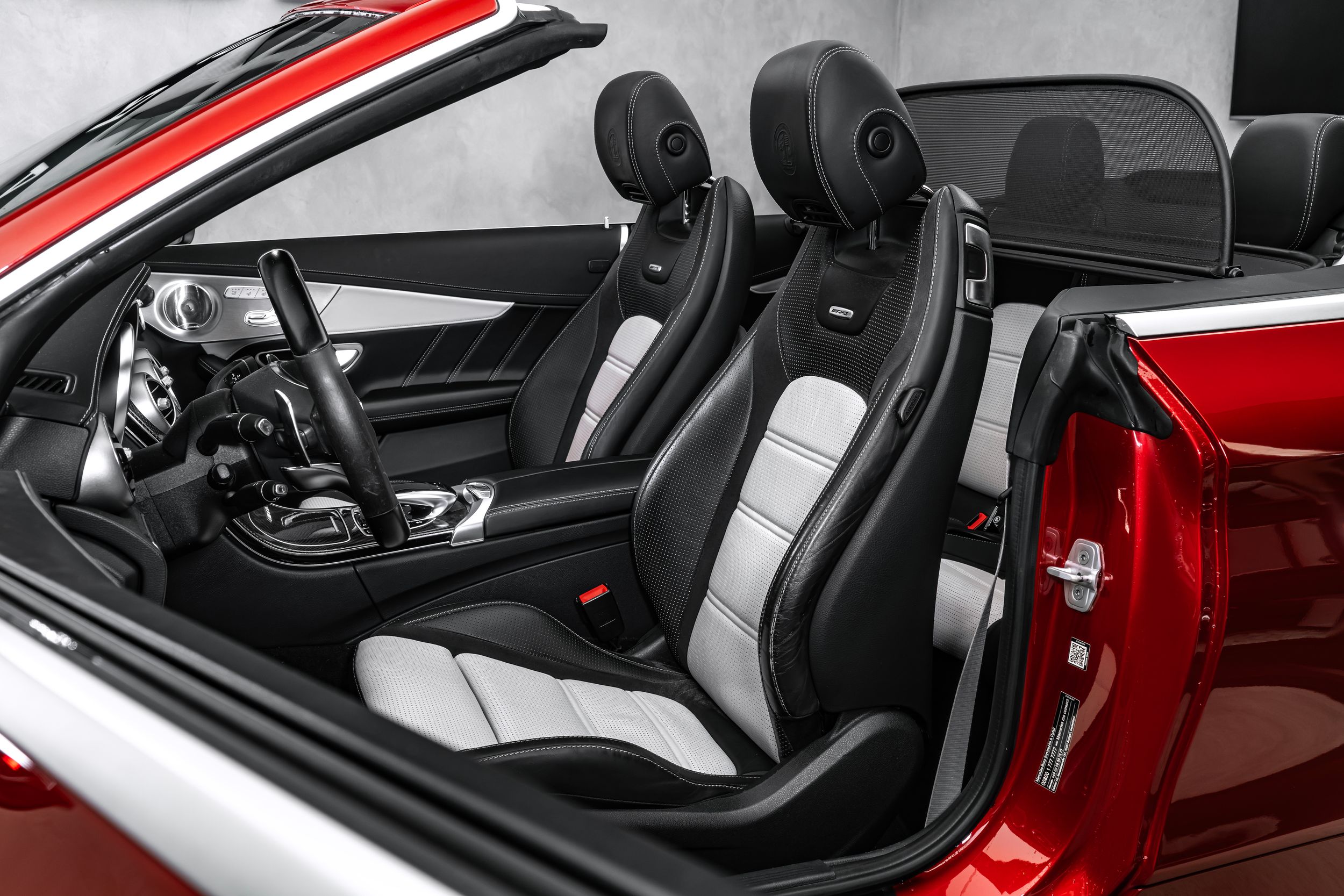 Balíček úložných prostor, Balíček Air Balance, Akustická měkká střecha černá, Ambientní osvětlení, Horní přístrojová deska ve vzhledu Nappa, Audionavigační systém: COMAND Online, Paket Cabrio Comfort, Tuner DAB (příjem digitálního rádia), Exteriérový paket 2 Carbon fibre (AMG), Exteriérový paket Carbon fibre (AMG), Paket jízdních asistentů Plus, Jízdní asistent: aktivní parkovací asistent, Jízdní asistent: adaptivní plus asistent dálkových světel, Head-up displej (front view display), Infotainment systém: (AMG), Interiér: obložení z uhlíkových vláken (AMG), Inteligentní světelný systém LED, 360stupňový kamerový systém, Keramický brzdový systém (AMG), Volant (AMG Performance, Dinamica), Ráfky LM vpředu/vzadu: 9x19 / 10,5x20 (AMG, cross-spoke, kované), Media Interface (univerzální rozhraní pro iPod / AUX / USB / MP3), Parkovací paket, Sada na opravu pneumatik (Tirefit), Vyhřívané ostřikovače čelního skla, Elektrické ovládání levého předního sedadla. (s pamětí), Pravé přední sedadlo elektricky nastavitelné (s pamětí), Potahy/čalounění sedadel: kůže Nappa, dvoubarevné, Přední sedadla: klimatizace, Speciální metalický lak hyacintově červené barvy (lak designo), Paket zrcátek, Sportovní výfukový systém (AMG Performance), Prostorový systém Burmester, Předpříprava pro mobilní telefon/ mobilní telefon/konvenční telefonování / možnost připojení k LTE.