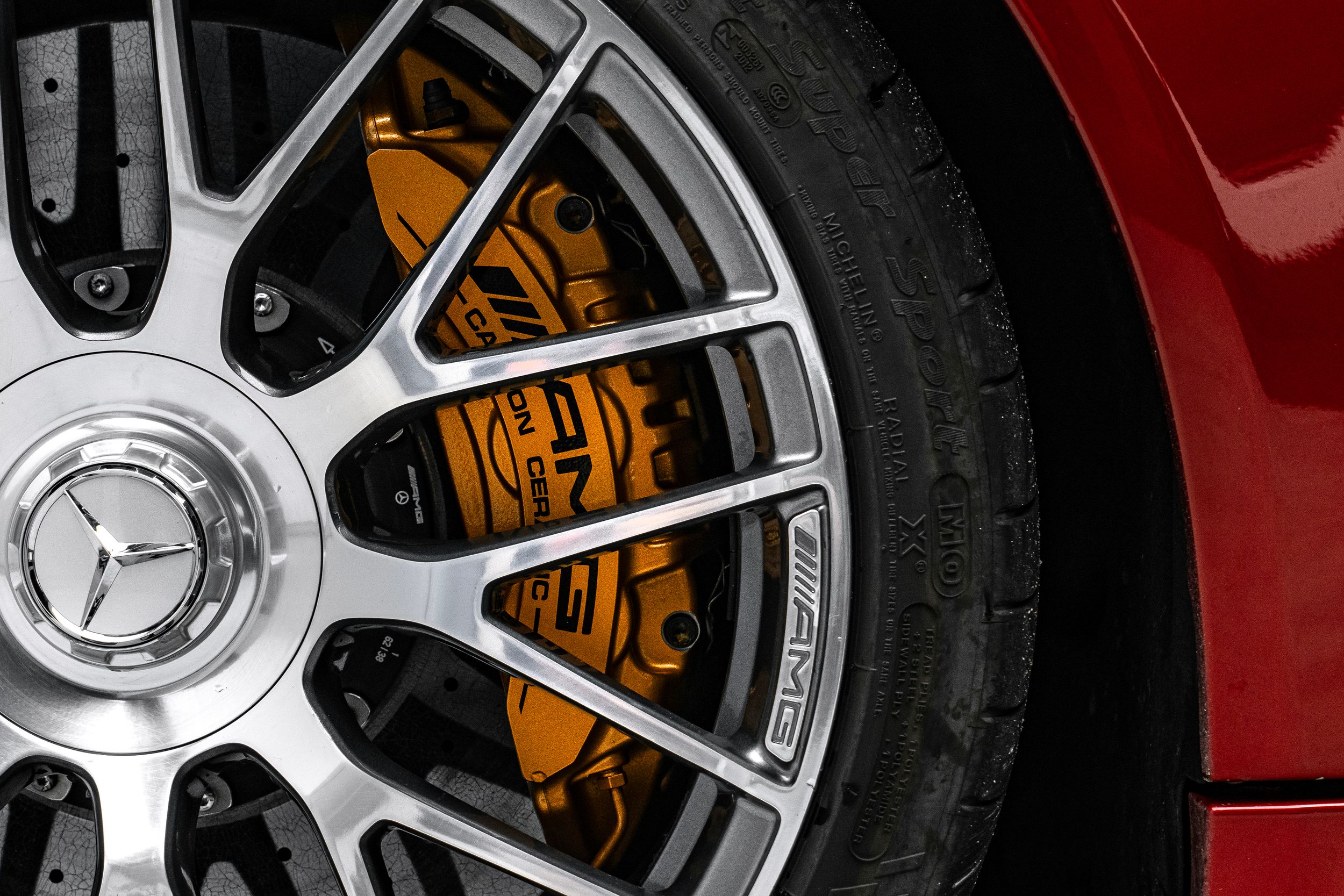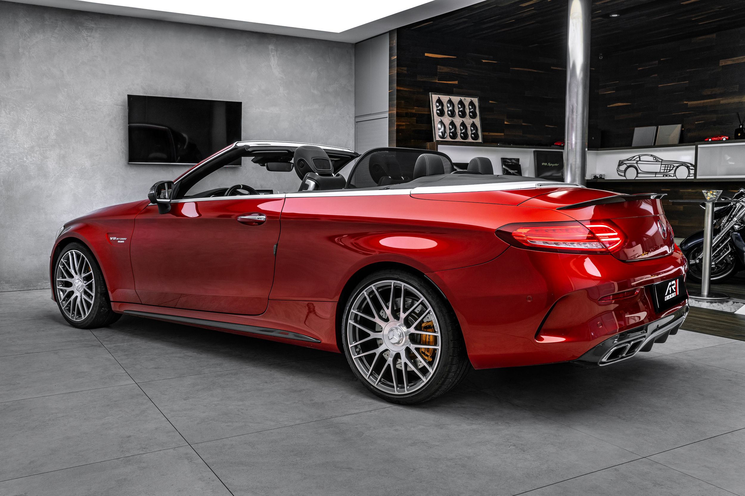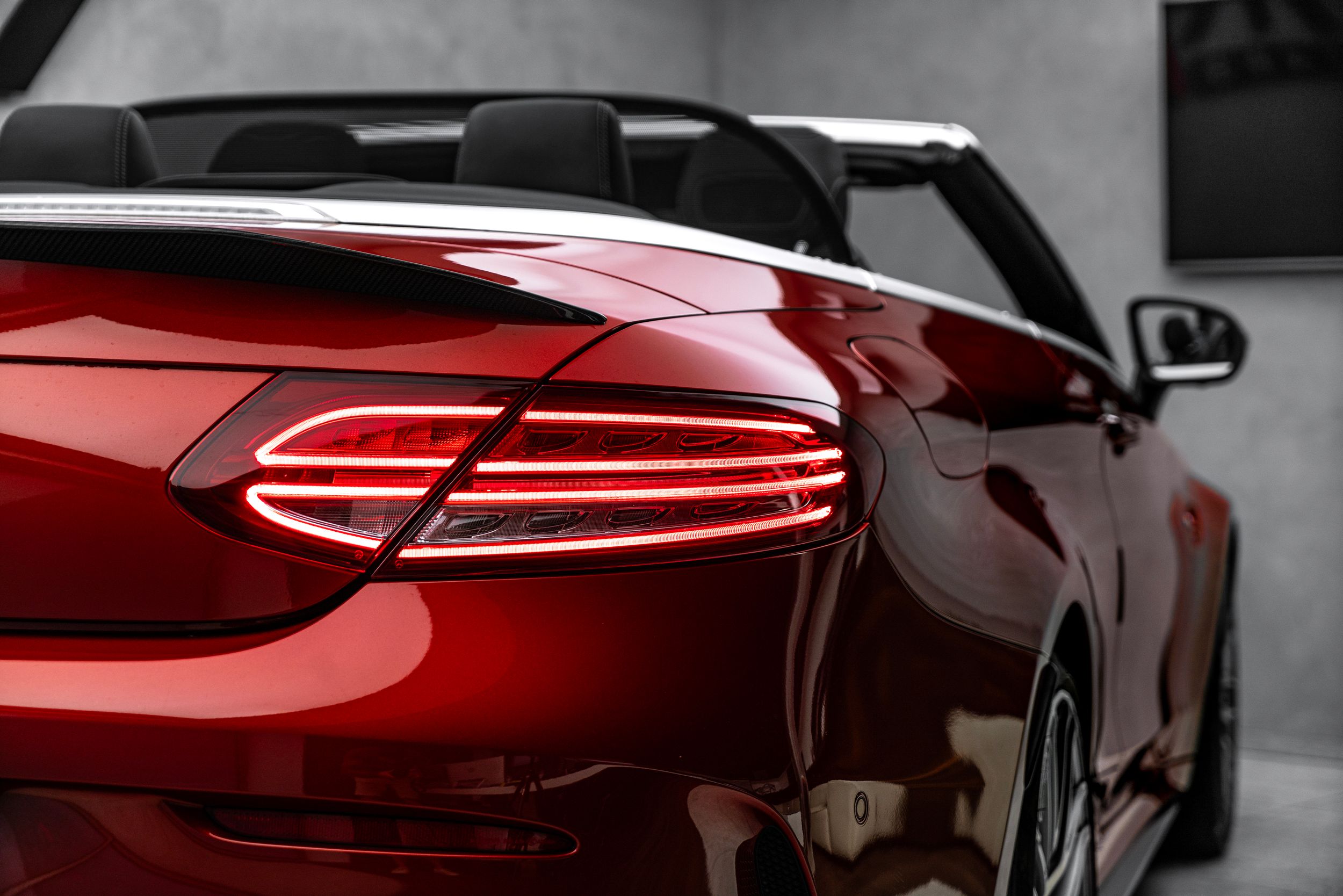 Balíček úložných prostor, Balíček Air Balance, Akustická měkká střecha černá, Ambientní osvětlení, Horní přístrojová deska ve vzhledu Nappa, Audionavigační systém: COMAND Online, Paket Cabrio Comfort, Tuner DAB (příjem digitálního rádia), Exteriérový paket 2 Carbon fibre (AMG), Exteriérový paket Carbon fibre (AMG), Paket jízdních asistentů Plus, Jízdní asistent: aktivní parkovací asistent, Jízdní asistent: adaptivní plus asistent dálkových světel, Head-up displej (front view display), Infotainment systém: (AMG), Interiér: obložení z uhlíkových vláken (AMG), Inteligentní světelný systém LED, 360stupňový kamerový systém, Keramický brzdový systém (AMG), Volant (AMG Performance, Dinamica), Ráfky LM vpředu/vzadu: 9x19 / 10,5x20 (AMG, cross-spoke, kované), Media Interface (univerzální rozhraní pro iPod / AUX / USB / MP3), Parkovací paket, Sada na opravu pneumatik (Tirefit), Vyhřívané ostřikovače čelního skla, Elektrické ovládání levého předního sedadla. (s pamětí), Pravé přední sedadlo elektricky nastavitelné (s pamětí), Potahy/čalounění sedadel: kůže Nappa, dvoubarevné, Přední sedadla: klimatizace, Speciální metalický lak hyacintově červené barvy (lak designo), Paket zrcátek, Sportovní výfukový systém (AMG Performance), Prostorový systém Burmester, Předpříprava pro mobilní telefon/ mobilní telefon/konvenční telefonování / možnost připojení k LTE.