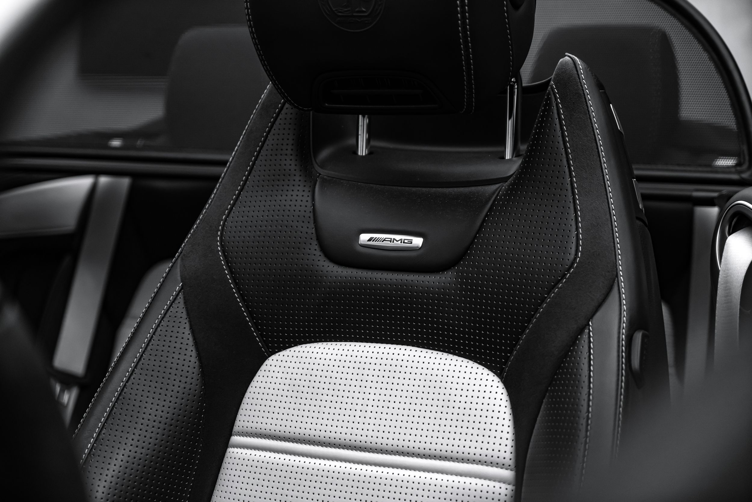 Úložný balíček, audionavigační systém COMAND Online, DAB tuner (digitální rádiový příjem), balíček asistenčních systémů Plus, informační systém řidiče (AMG Performance Media), Vozidlo bez označení modelu, Vnitřní obložení: Jasanové dřevo, černé, Palivová nádrž: 80 litrů (zvětšená kapacita, objem 2), Paměťový balíček, Metalický lak, Středová konzola v jasanovém dřevě, černé, Multibeam LED světlomety, Noční balíček (AMG), Elektrické panoramatické posuvné střešní okno (plně prosklená střecha), Parkovací balíček s 360° kamerou, Sada na opravu pneumatik (Tirefit), Vyhřívaný ostřikovač čelního skla, Přední sedadla: klimatizace, Integrace chytrého telefonu, Sportovní výfukový systém (AMG Performance), Systém prostorového ozvučení Burmester, Analogové hodiny.