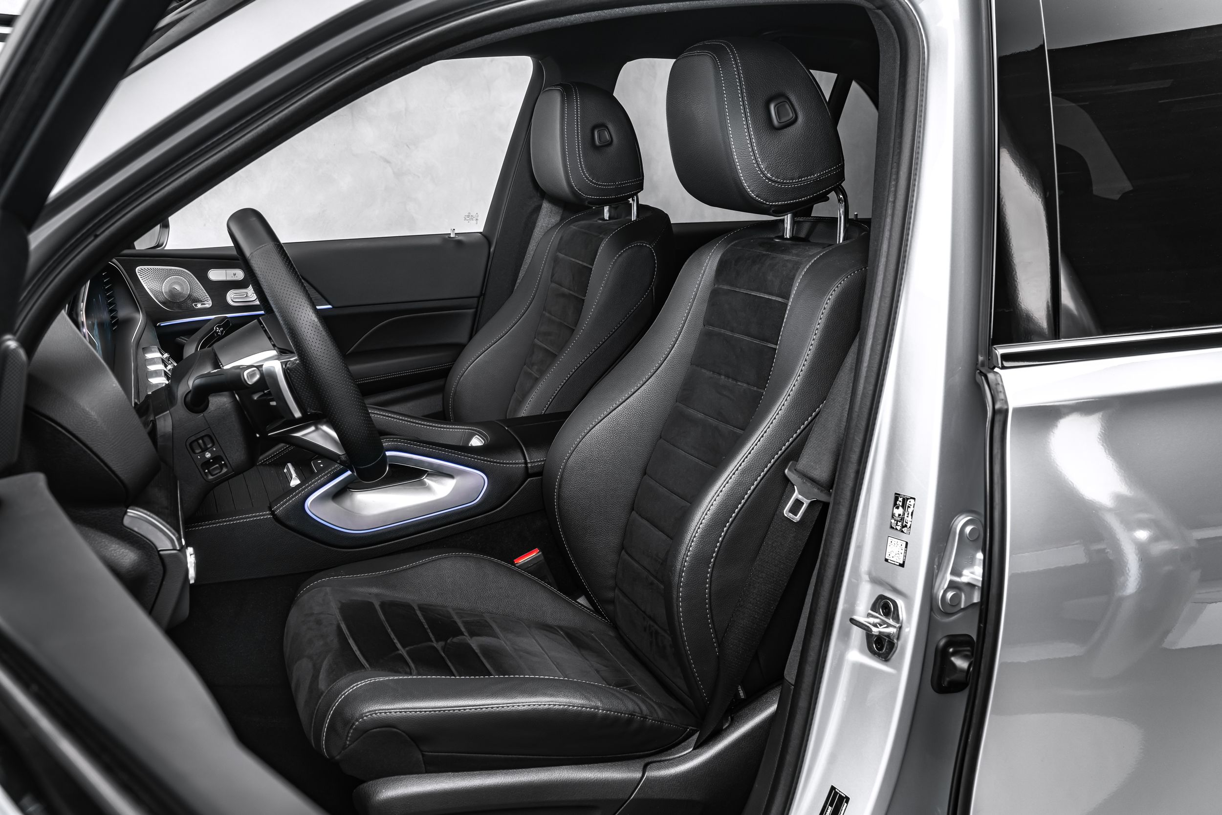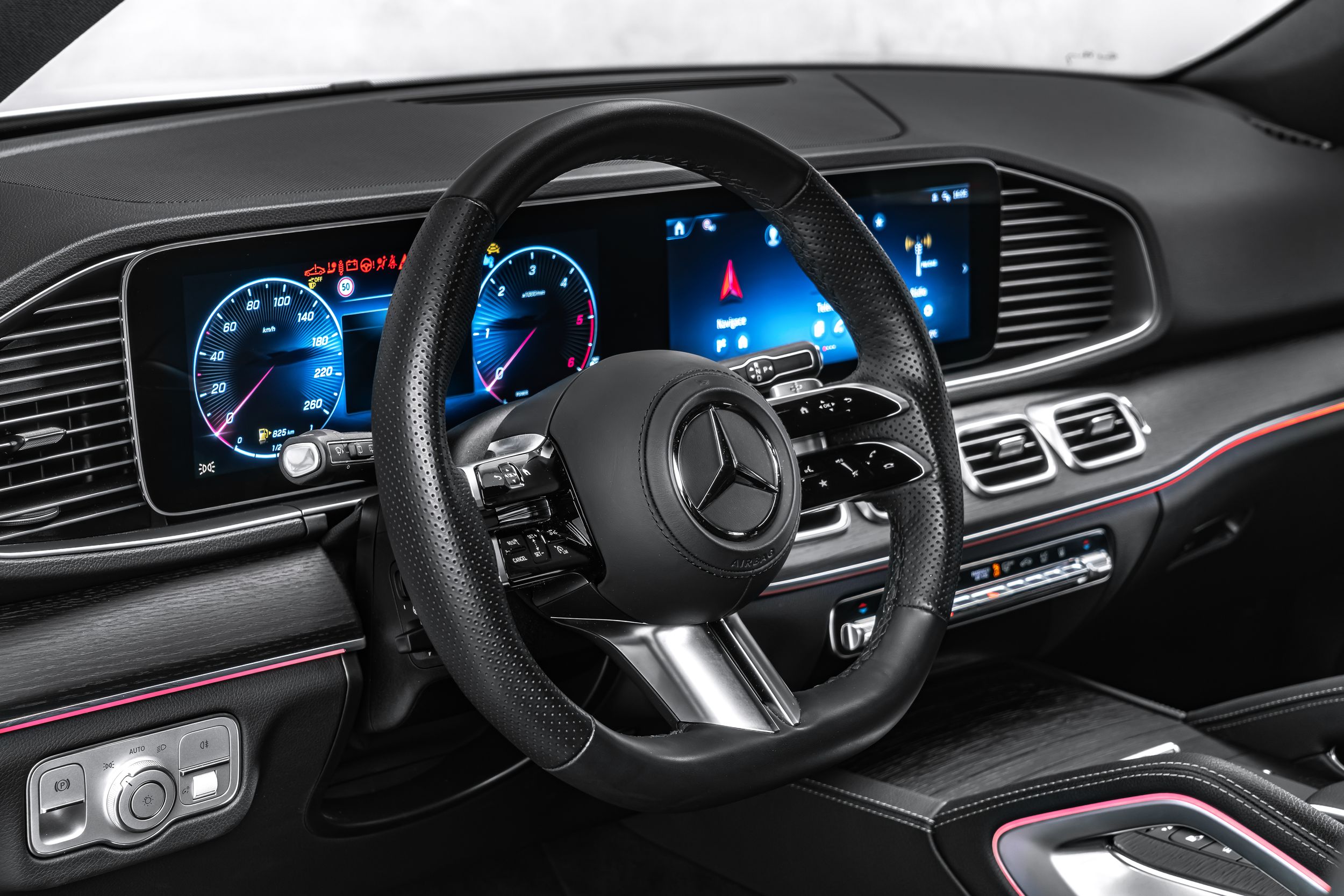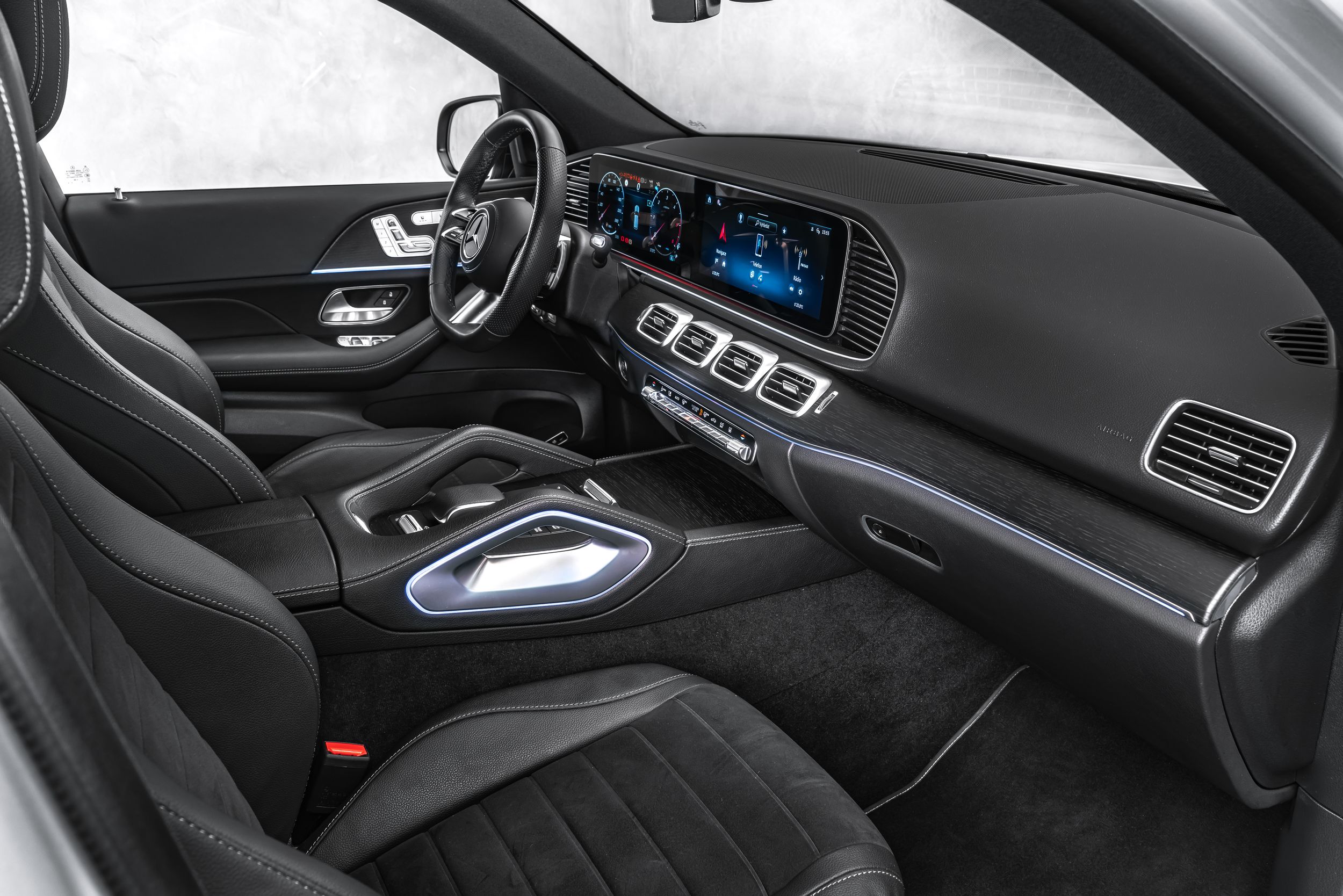 Interiér AMG Line, zvýšená tažná kapacita, výbavový paket Advanced Plus, dvojité sluneční clony (výsuvné, otočné), asistenční systémy řidiče: aktivní asistent pro omezení rychlosti, interiérové obložení: dubové dřevo, černý stropní čalounění, automatická klimatizace (Thermotronic), paket akustické komfortní výbavy, kola z lehkých slitin vpředu/vzadu: 10x21 / 11x21 (AMG, 5 dvojitých paprsků, RYA), multimediální systém MBUX Entertainment, paket Night, systém rozšířené reality MBUX pro navigaci, čalounění sedadel: umělá kůže Artico / mikrovlákno Microcut, USB port vzadu, zimní paket, nezávislé topení.