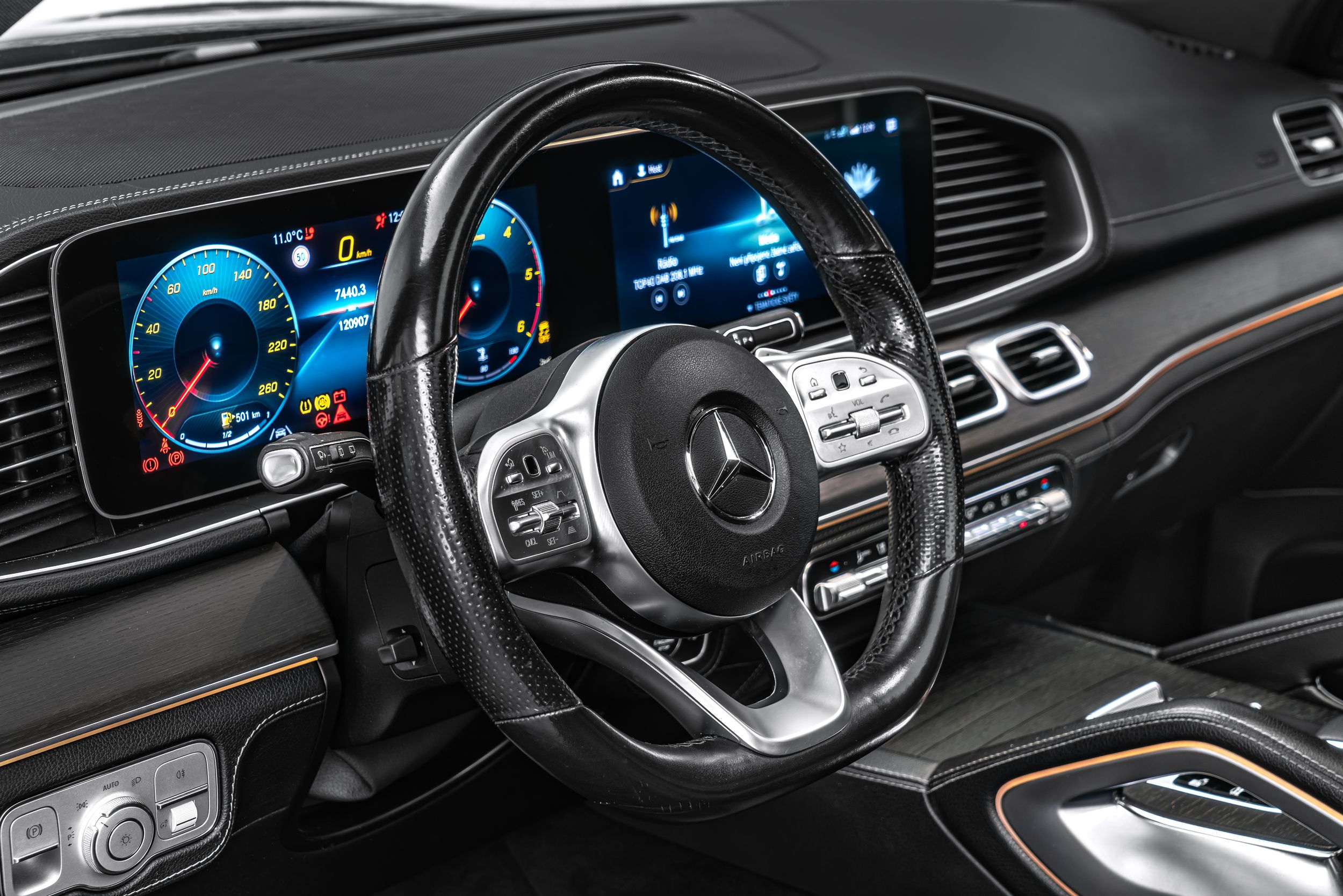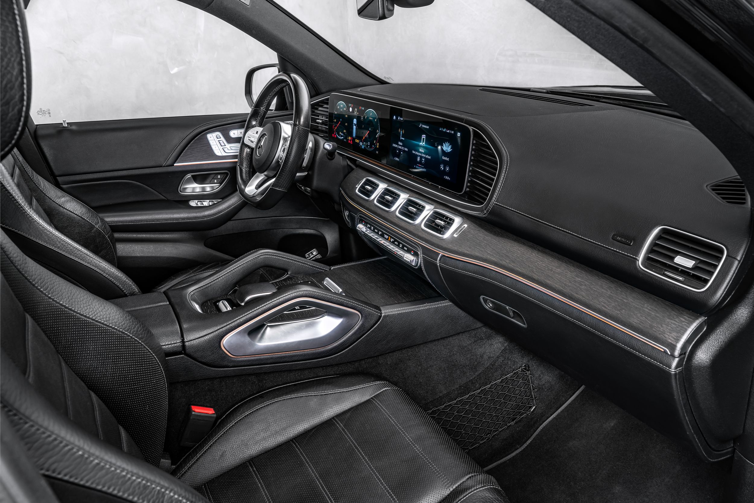 Adaptivní stěrače (Magic Vision Control) s vyhříváním, palubní deska v imitaci kůže Artico, výbavový balíček: Energizing, DAB tuner (digitální příjem rádia), balíček asistenčních systémů Plus, asistenční systém: asistent pro manévrování s přívěsem (Trailer Assist), vnitřní výbava: dřevo dub, černý strop, litá kola vpředu/vzadu: 9,5x23 / 11,5x23 (AMG, 5 dvojitých paprsků, RPQ), paměťový balíček, metalický lak, systém zvuku motoru, multikonturová sedadla vpředu, noční balíček, panoramatické střešní okno, parkovací balíček s 360° kamerou, sada na opravu pneumatik (Tirefit), vysílač pro otevírání garážových vrat (integrovaný), servozavírání dveří, surroundový systém Burmester, předinstalace pro car sharing, předinstalace zábavního systému v zadní části;
