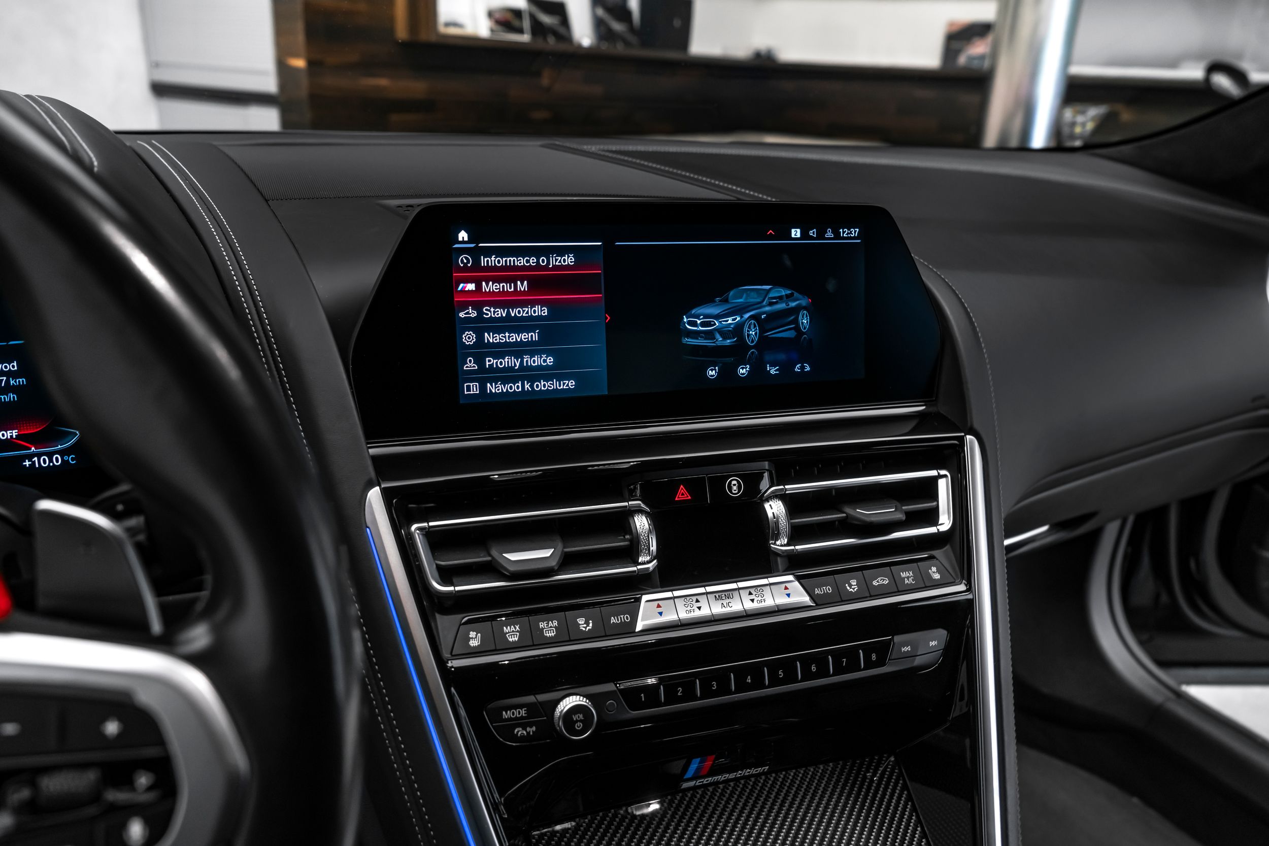 Infotainment systém: Remote Services Premium, Interiér: Dekorativní prvky s kovovou strukturou, komfortní paket, litá kola 8,5x19 (5 dvojitých paprsků, matná černá), noční paket, noční paket II, potahy sedadel kůže, technický paket, boční prahy (černé), předinstalace pro car sharing, tepelně-komfortní paket