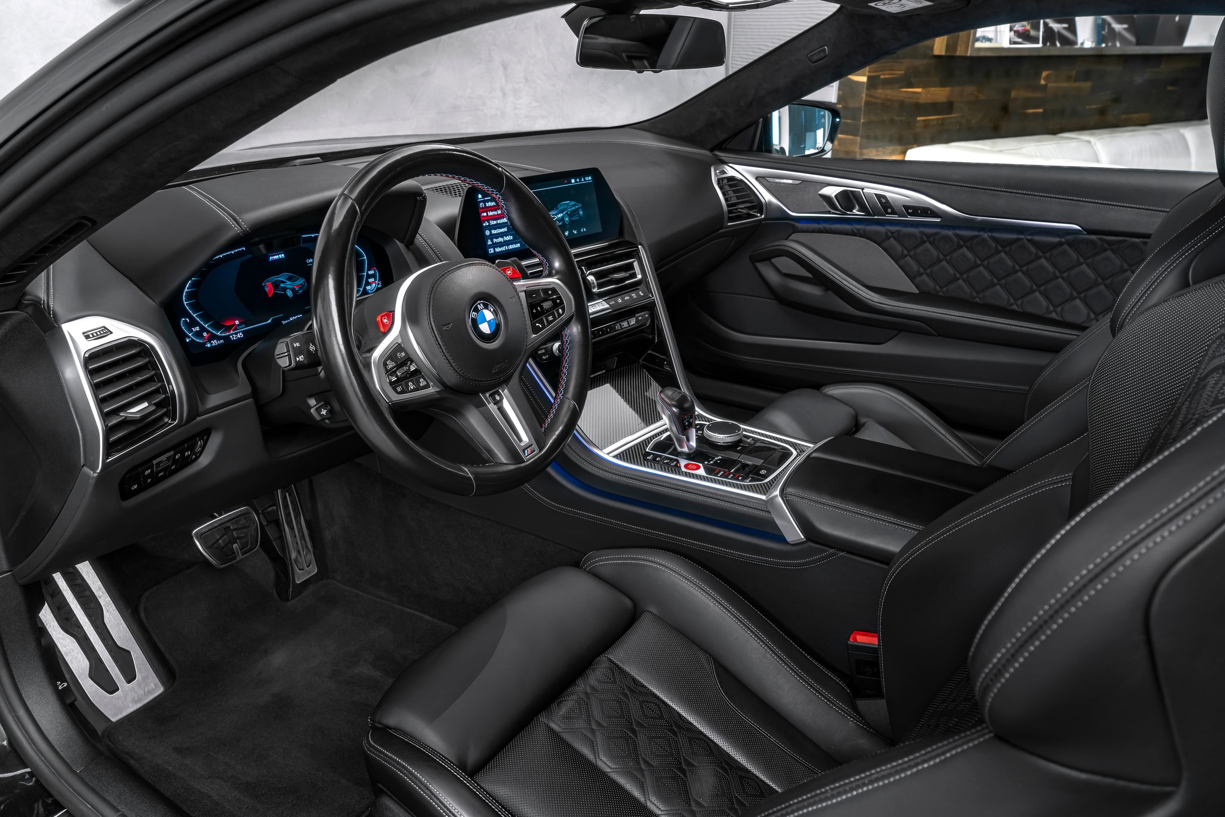 Adaptivní podvozek M-Technic, aktivní ventilace sedadel vpředu, vnější výbava: Shadow-Line High Gloss (rozšířený rozsah), elektricky sklopná vnější zrcátka, všechna zrcátka s automatickým stmíváním, galvanizované ovládací prvky, BMW Display Key, BMW Drive Recorder (dashcam), BMW Live Cockpit Professional, brzdový systém: brzdy M Sport (brzdové třmeny lakované, červené lesklé), DAB tuner (digitální příjem rádia), asistenční systém: BMW ovládání gesty, asistenční systém: asistent dálkových světel, handsfree zařízení Bluetooth s rozšířeným připojením smartphonu, head-up displej, bederní opěrka sedadla vpředu vlevo a vpravo, vyhřívaný volant, litá kola vpředu/vzadu: 8,5x21 / 9,5x21 (V-paprsek 726 I), panoramatická střecha (sklo), balíček Park Assist Plus, bezpečnostní systém Active Protection, potahy sedadel / čalounění: kůže Vernasca s dekorativním prošíváním, sluneční rolety na zadních dveřích, sluneční clony (zadní tónovaná), zvukový systém Harman-Kardon, univerzální otevírač garážových vrat, akustické sklo;