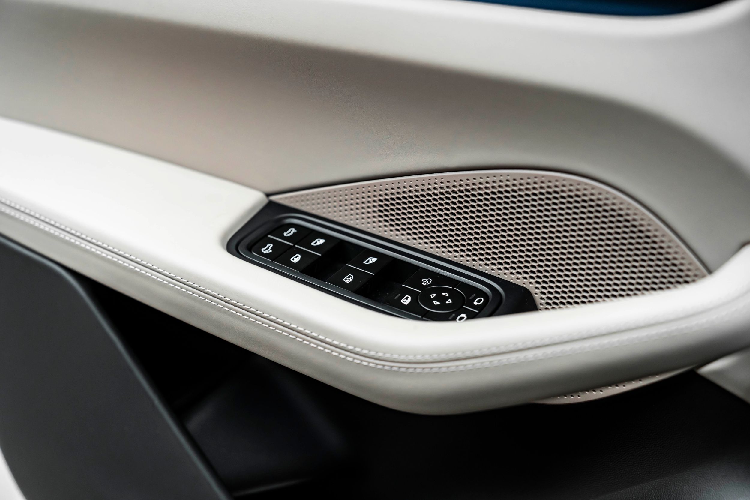 AVY – Interior mirror console in Race-Tex: Konzola vnútorného spätného zrkadla v materiáli Race-Tex s kontrastným prešívaním