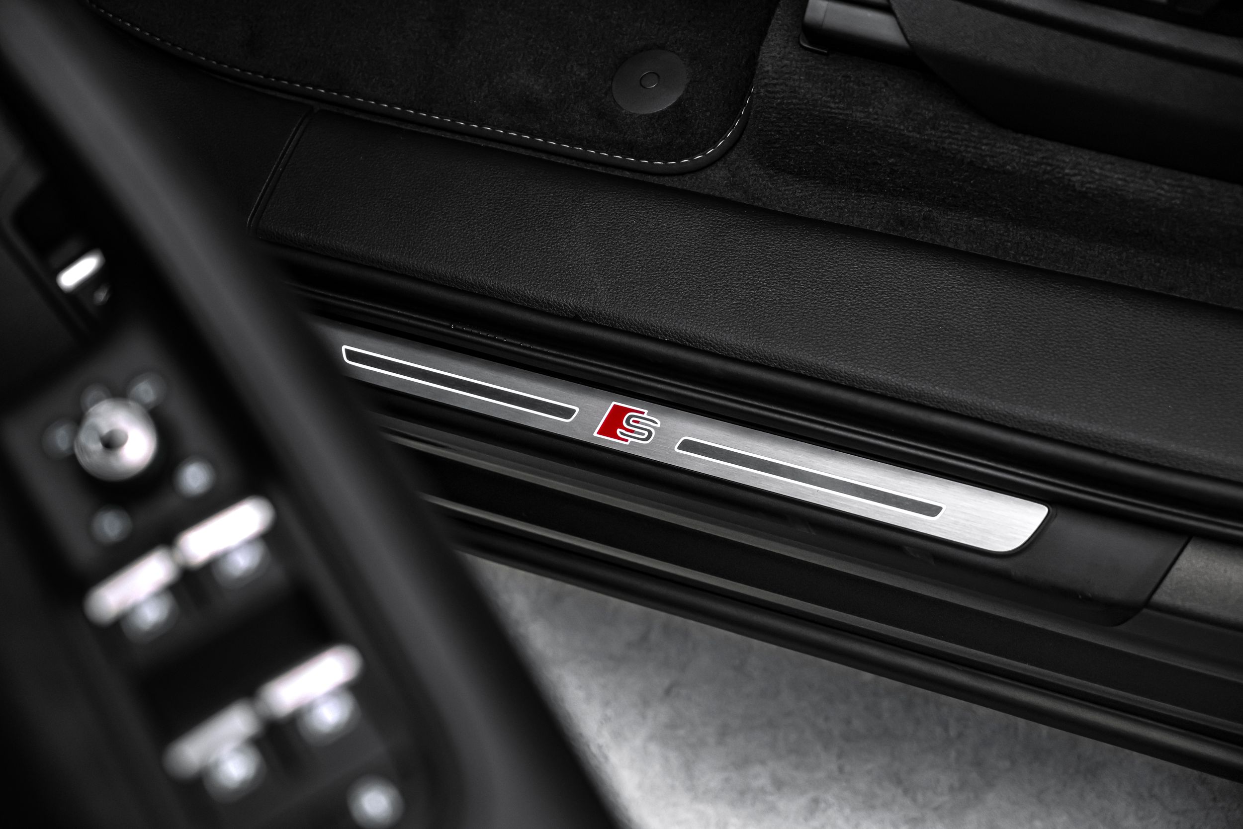 7M8 – Illuminated door sill guards in Carbon matt: Osvetlené prahové lišty z matného karbónu