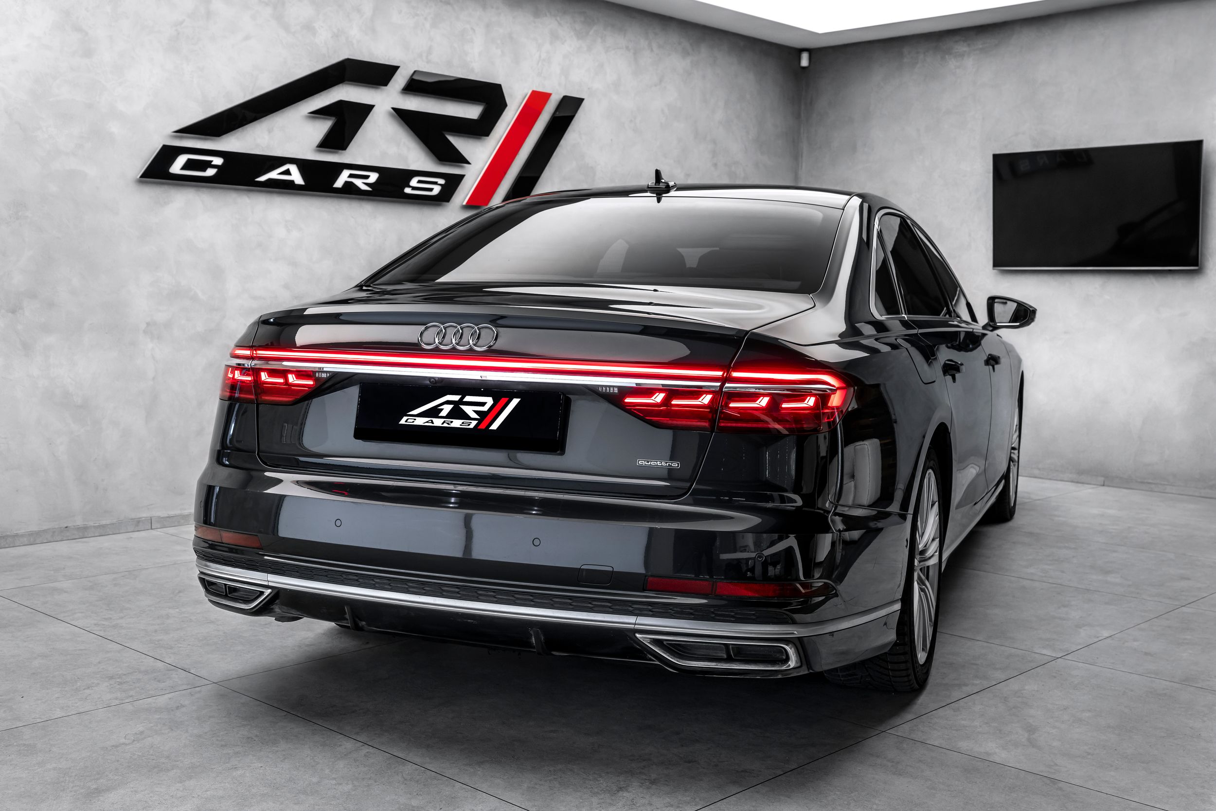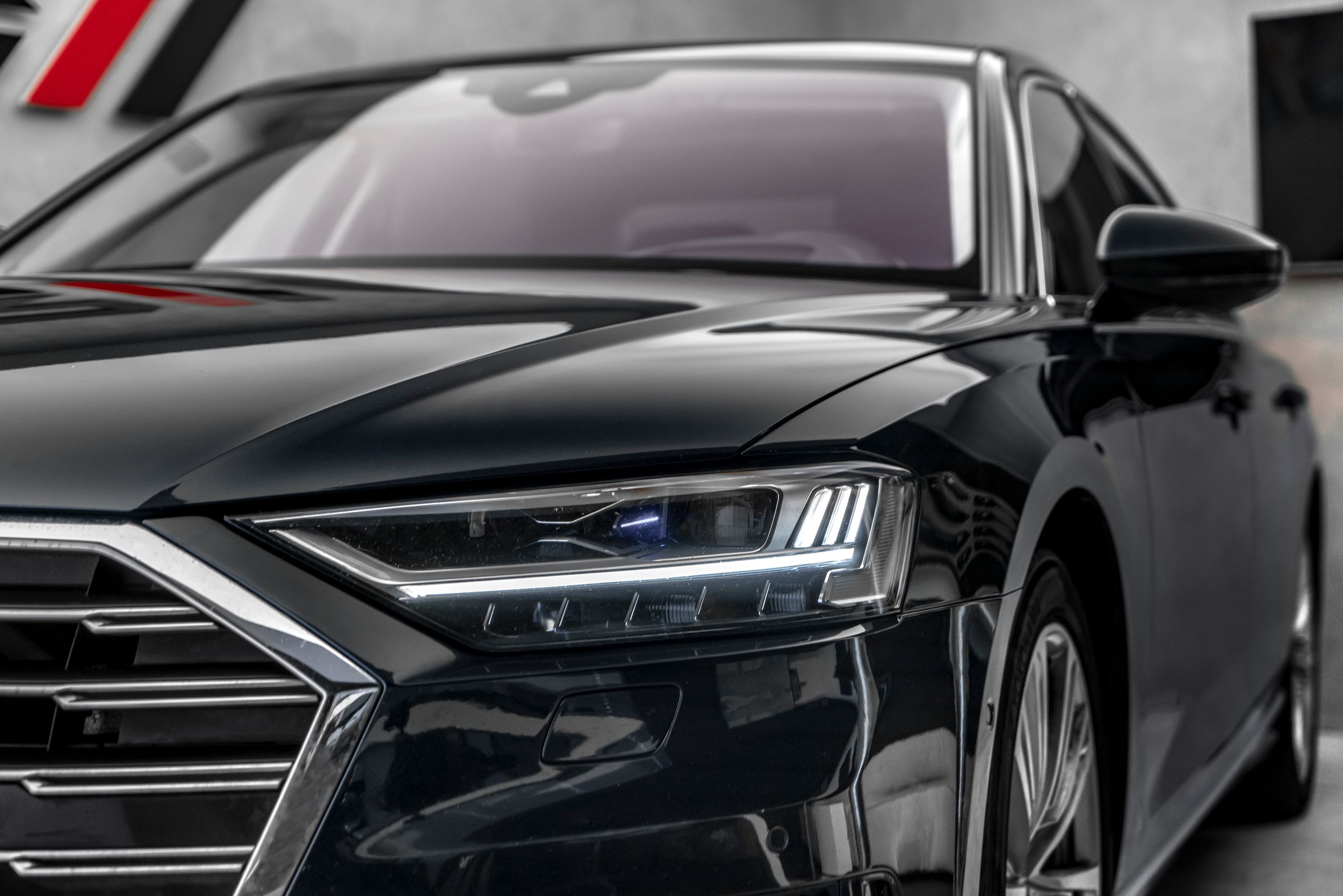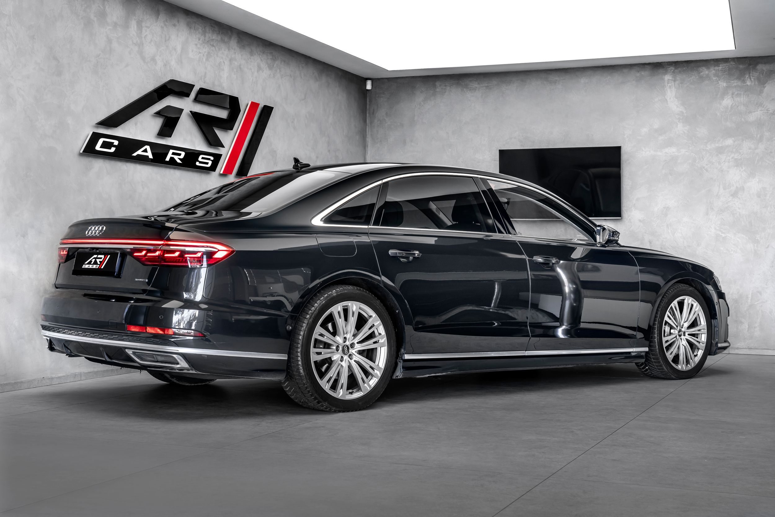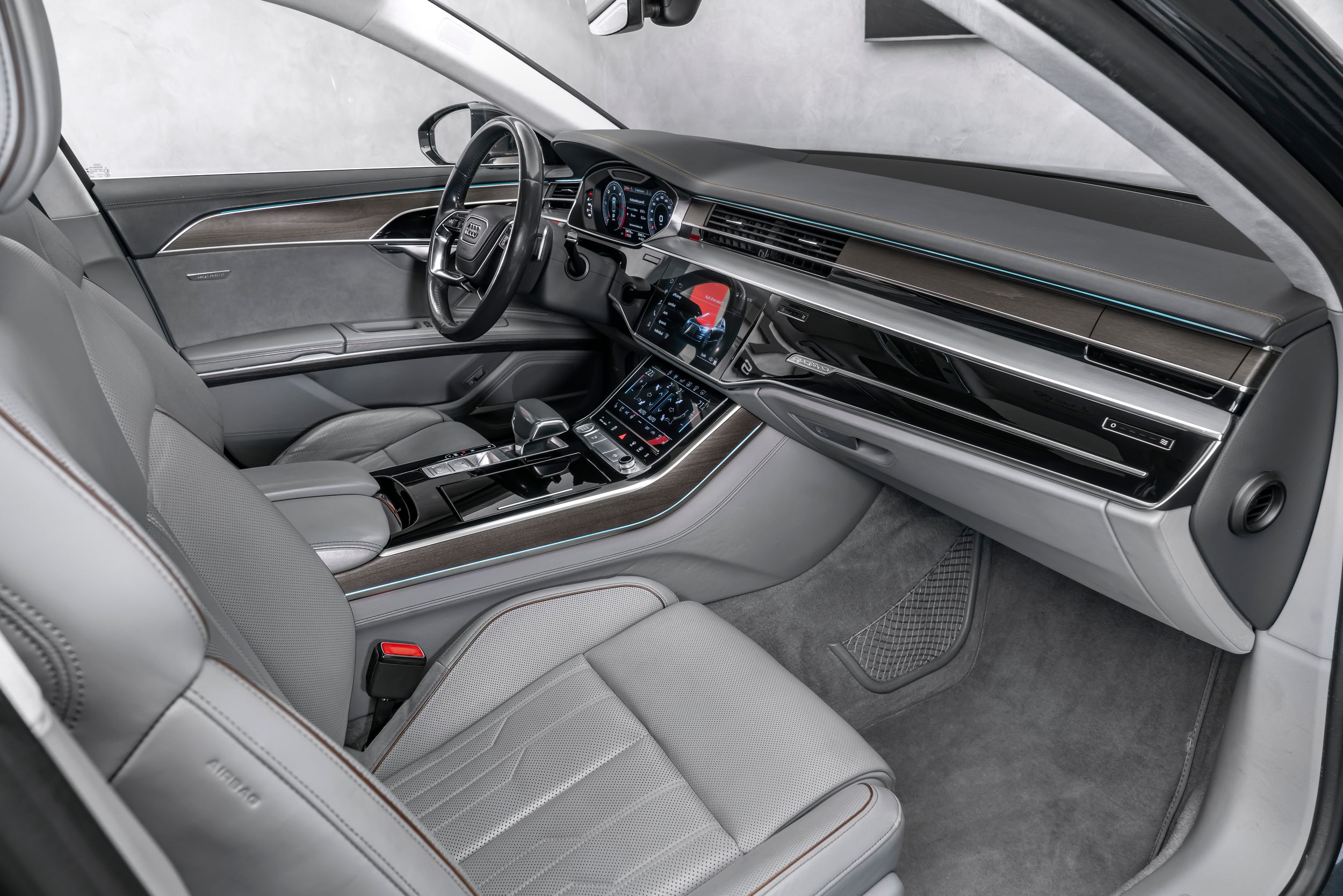 Paket City Assistance, rozhraní Audi music v zadní části vozu, rozhraní Audi Smartphone Interface, paket výbavy: Audi Design Selection, šedá Merino, ovládací prvky s imitací skla včetně rozšířeného hliníkového vzhledu, systém pro nakládání průchozích předmětů (středová loketní opěrka vzadu), dynamické řízení - řízení všech kol, paket zadních sedadel s jednotlivými sedadly (2+1 sedadla), vozidlo bez DVD mechaniky, paket pro zavazadlový prostor, head-up displej, ionizátor pro čištění vzduchu (systém kvality vzduchu), kamerový systém s výhledem do okolí (pohled shora), paket pro konturové/ambientní osvětlení (plus), palivová nádrž: 82 litrů, přídavná čtecí světla v zadní části vozu, litá kola 9x20 (10paprsková, design Y), maticové LED světlomety s laserovým světlem, panoramatické střešní okno, elektrické ovládání vpředu, pevné vzadu, perleťový lak, dálkové ovládání zadních sedadel (centrální jednotka vzadu), rezervní kolo jako nouzové kolo, integrovaný vysílač otevírání garážových vrat, elektrické zavírání dveří, bezpečnostní paket, ventilace a masážní funkce vpředu a vzadu, audiosystém Bang & Olufsen, paket pro sportovní exteriér, nezávislé topení, zásuvka 230 V, telefon vzadu bez bezdrátového nabíjení (Audi Phone Box), digitální televizní příjem (tuner) a digitální rádiový příjem, tónovaná zadní okna (zatmavená skla) a akustická skla předních dveří, zvedák, komfortní paket pro teplé a chladné vozy vpředu a vzadu, tepelně izolační sklo (izolační sklo), tepelně izolační sklo s vyhřívaným čelním sklem (izolační sklo).
