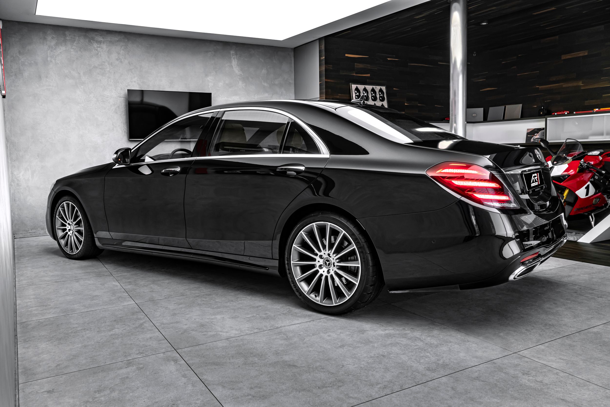 Paket Air Balance, deaktivace airbagu spolujezdce, ambientní osvětlení (rozšířený dosah), DAB tuner (digitální rádio), paket zábavy pro zadní sedadla, dvojité držáky nápojů vpředu, head-up displej, dvě bezdrátová sluchátka, volant čalouněný dřevěným/kůží, kola z lehkých slitin vpředu/vzadu: 8,5x20 / 9,5x20 (AMG, vícepaprsková), paket s paměťovou funkcí, metalický lak, světlomety Multibeam LED, panoramatické střešní okno, parkovací paket, sada na opravu pneumatik (Tirefit), centrální zamykání dveří a víka zavazadlového prostoru, čalounění z kůže Nappa, klimatizace vpředu a vzadu, klimatizace vzadu, sada s ochranou proti slunci, zásuvka 230 V, systém prostorového ozvučení Burmester, TV tuner.