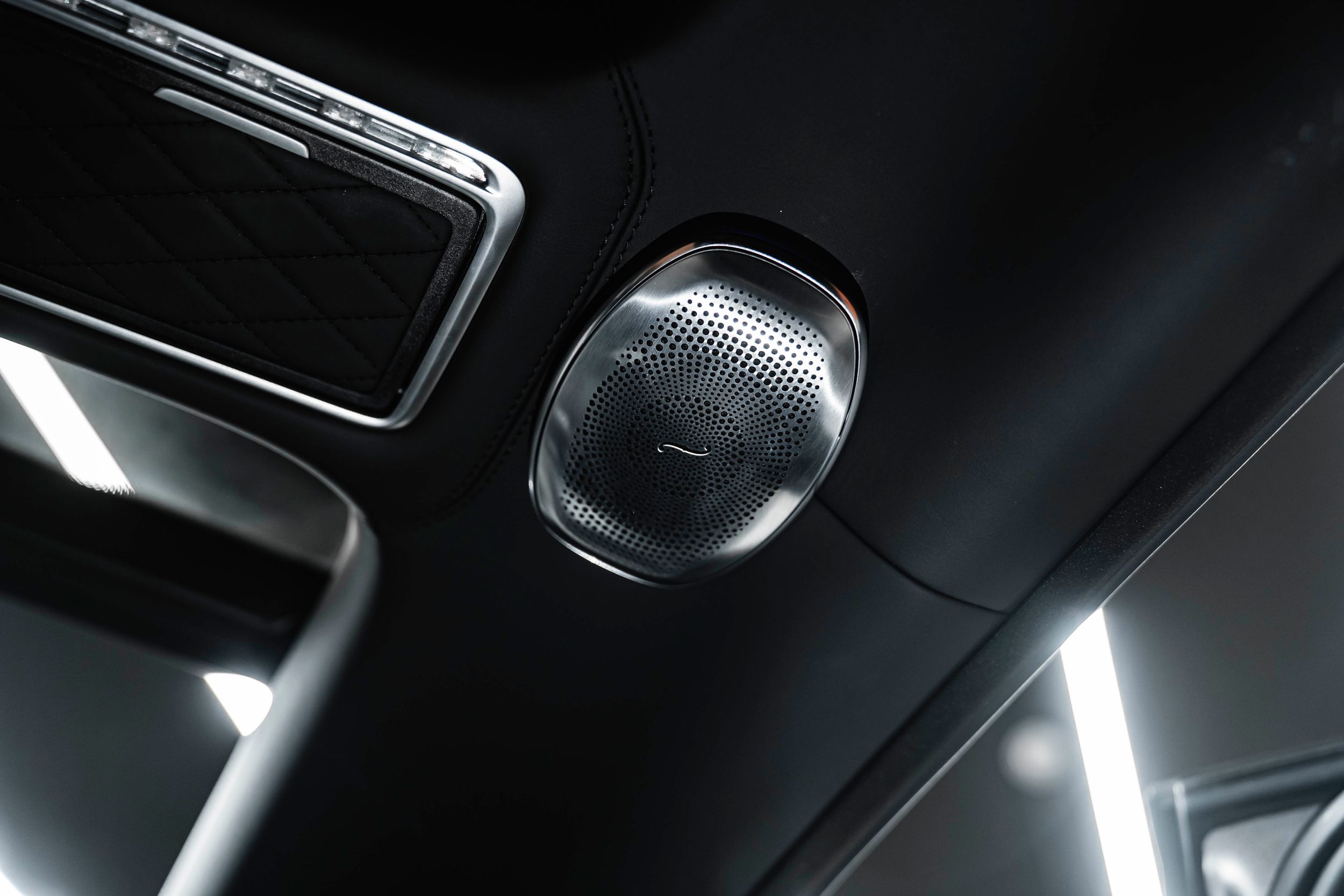 • Čierne kožené čalúnenie stropu